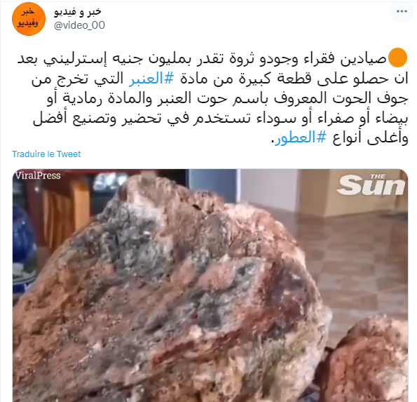 و أخيرا ابتسم الحظ لصياد تايلندي فقير حيث قلب حياته رأساً على عقب وجعله مليونيراً بين ليلة وضحاها ، باكتشاف قيء لحوت يحتوي على 30 كيلو غرامًا من العنبر وربما ، يقدر ثمنها بحوالي مليون دولار أميركي.