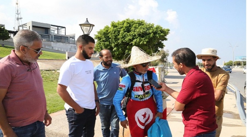 وبدأ فتح بن امبارك رحلته من قابس، في العشرين من شهر سبتمبر الماضي، وعبر الحدود الليبية الغربية قبل أيام حيث وصل إلى طرابلس مروراً بعدد من المدن على الساحل الغربي.